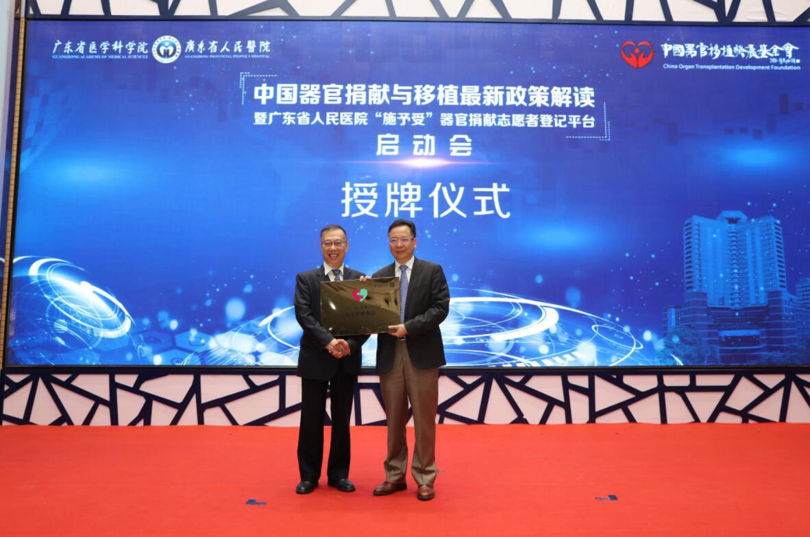 廣東省衞健委巡視員劉冠賢現場登記,成為該平台第929605 位志願者,他更倡議廣東省所有公立醫院都加入該平台。他認為,「施予受」器官捐獻志願者登記平台基於互聯網時代,向社會大眾介紹、推廣器官捐獻的理念,喚起公眾對器官捐獻的關注,增強公民參與器官捐獻的意識,將有利於促進廣東省的器官捐獻與移植工作。