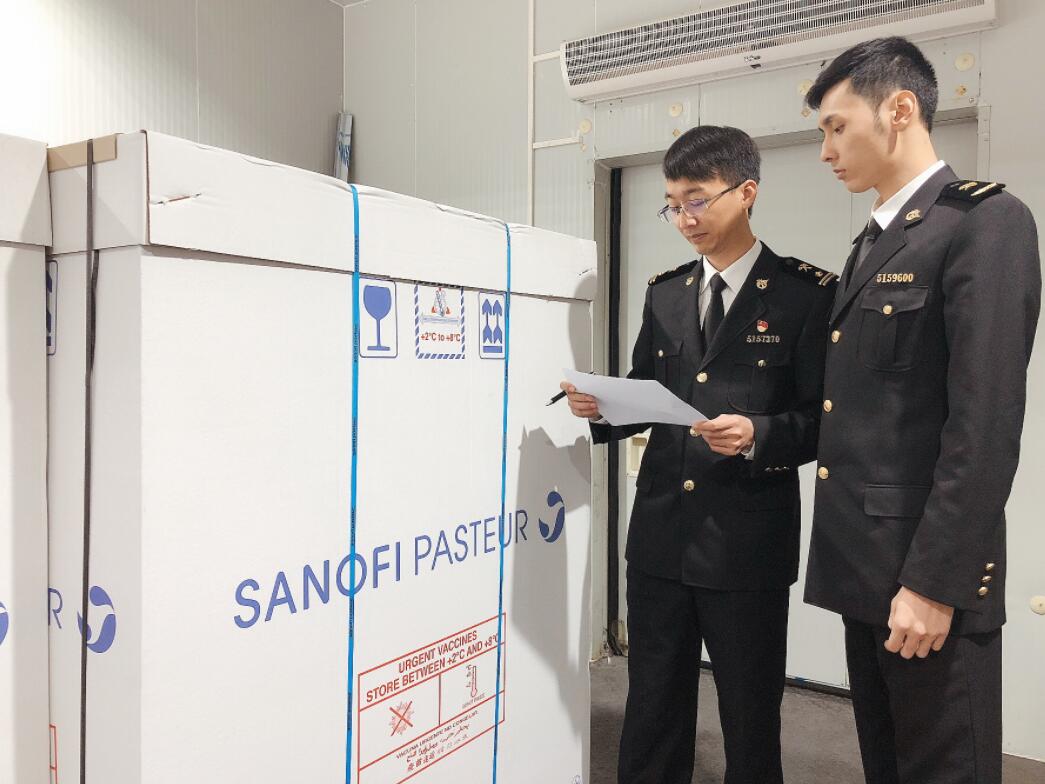 廣州海關關員在低溫保稅倉對進口藥品實施查驗
