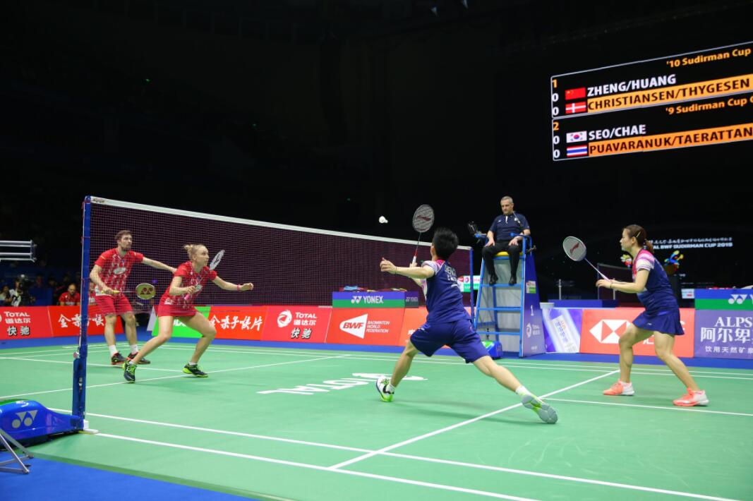 首場混雙賽中,由世界排名第一的中國組合鄭思維/黃雅瓊對陣丹麥克里斯蒂安森/蒂格森。丹麥隊發揮出色,以21:19贏得首局。中國組合迅速調整戰術,以21:11和21:13連贏兩局逆轉取勝。