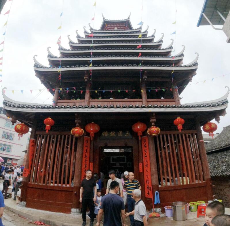 三江侗族自治縣八江鎮三團村鼓樓全景