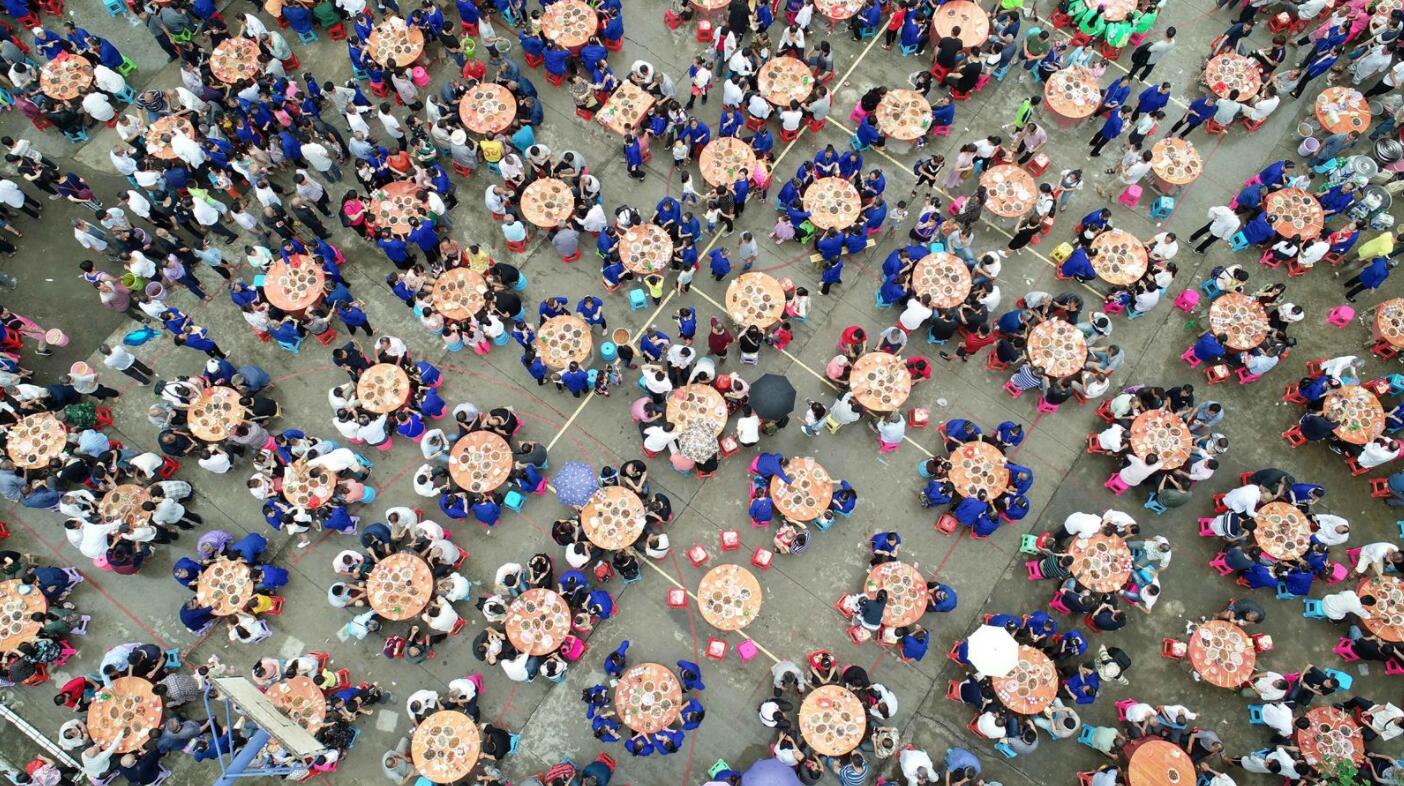 人們在三江侗族自治縣八江鎮三團村共進百家宴