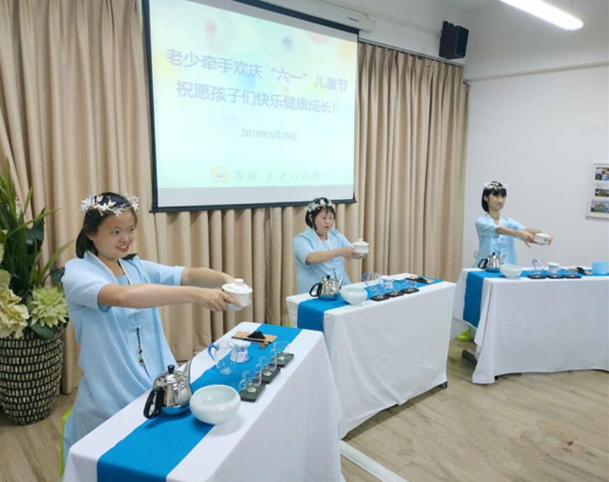 快樂在笑聲中流淌,關愛在慰問中傳遞。青羊區特殊教育學校的3名學生在訓練老師的指導下現場進行了茶藝表演,稍顯生硬的手勢卻不失可愛,這是一次成功的演出,贏得了在場所有人熱烈的掌聲。