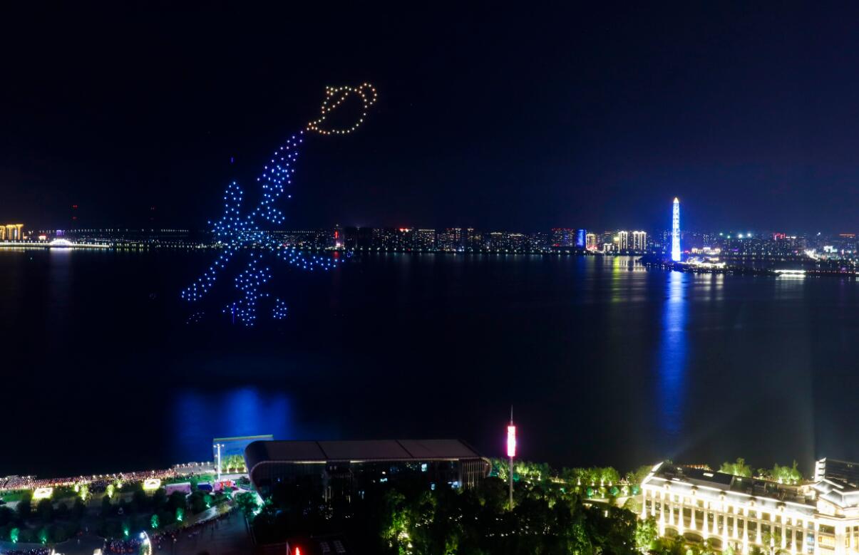 【香港商報網訊】為提升九江名茶名泉品牌影響力,促進文旅融合發展,5月29日晚,江西九江的八裡湖新區舉行了600架無人機編隊「空中造景」表演活動。