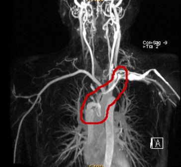 該院檢查發現腫瘤將近10cm大小,已經侵犯上腔靜脈,上腔靜脈、雙側頭臂靜脈及右側頸內靜脈內已經有癌栓並血栓形成,上腔靜脈已經無法通過影像看到,正是這些栓子導致張先生出現了頭暈、臉腫等上腔靜脈阻塞的癥狀。深圳市二醫院胸外科主任錢有輝教授仔細分析病情後指出,本例患者主要問題在於患者的胸腺瘤已經出現了大血管侵犯,手術需要完整切除腫瘤之外還需要對部分大血管進行切除並置換人工血管,這樣才能達到斬草除根的效果。