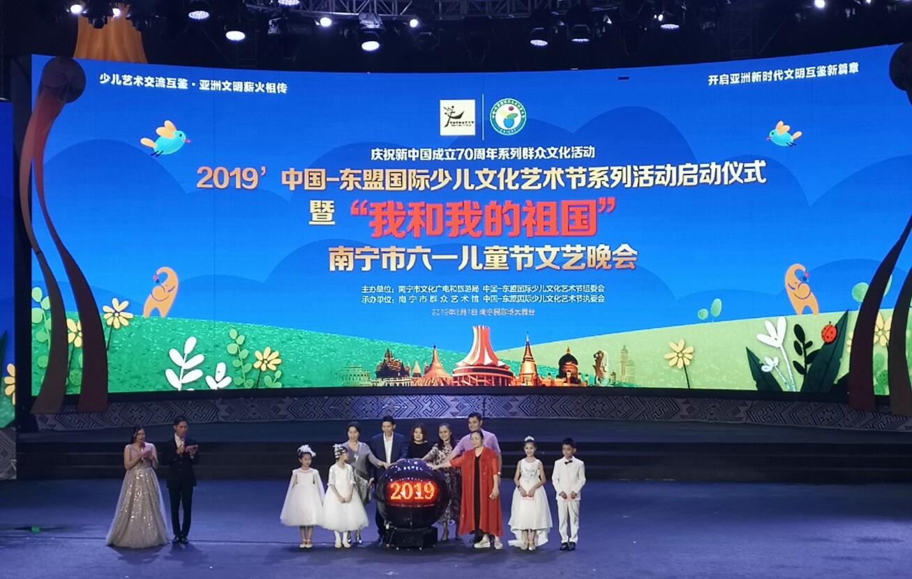 【香港商報網訊】記者 歐陽萍 報導:6月1日,2019中國-東盟國際少兒文化藝術節系列活動啟動儀式暨「我和我的祖國」南寧市慶祝六一兒童節文藝晚會在廣西南寧啟動,本屆藝術節以「少兒藝術交流互鑒,推動文明薪火相傳」為理念,以聚焦文明,講好故事為主旨,以少兒文化藝術展演為內容,搭建中國與東盟少年兒童互通互訪平台,增進中國與東盟之間的文化藝術交流。