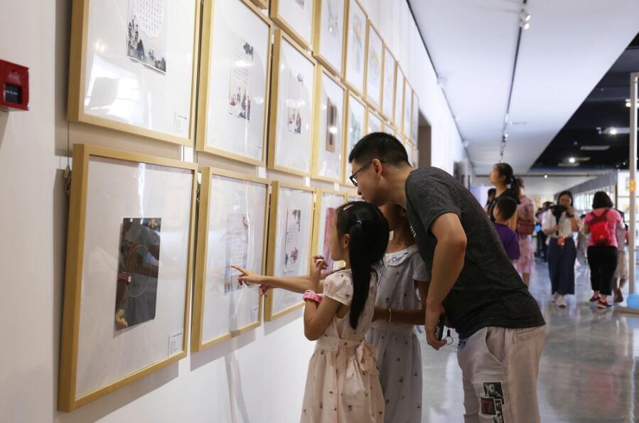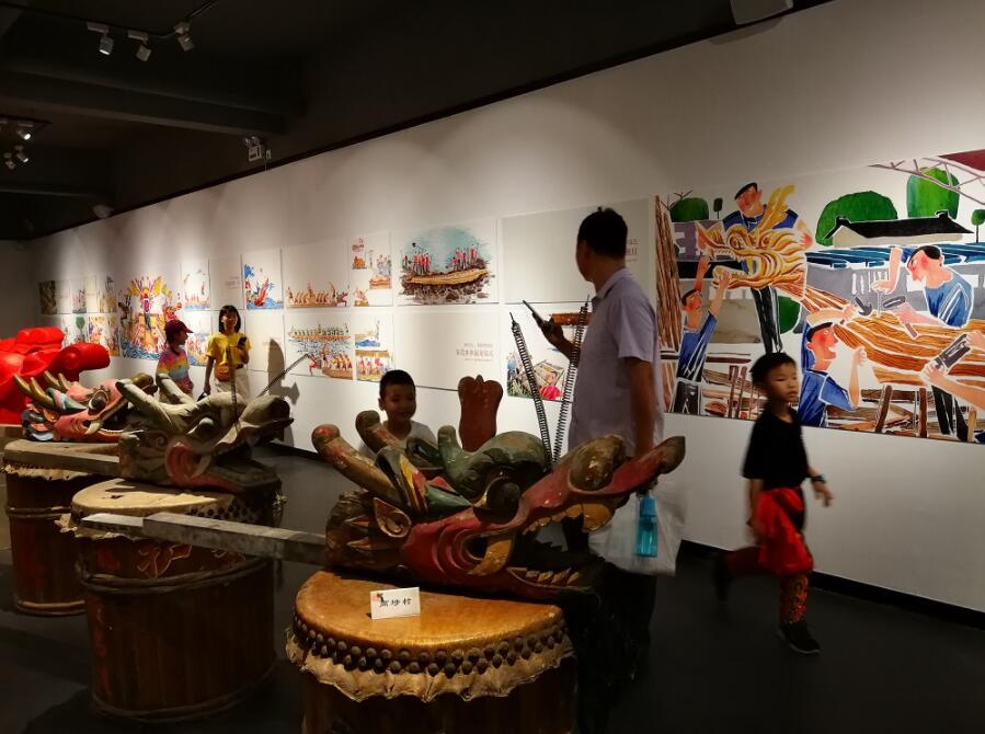 大小朋友觀看龍舟杯少兒美術大賽作品展