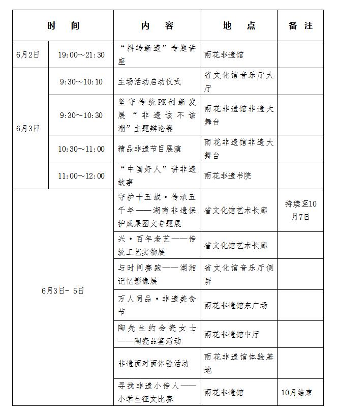 ——湖南省2019年文化和自然遺產日非物質文化遺產宣傳展示主場活動安排表