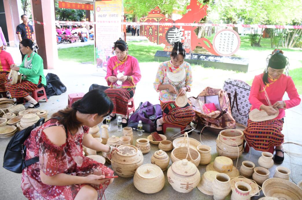 上午9點,在七仙廣場活動現場,黎族竹木器樂、黎族樹皮布、黎族鑽木取火、黎族藤竹編技藝等展演、比賽,吸引不少市民遊客駐足觀看,零距離感受民族文化的魅力。