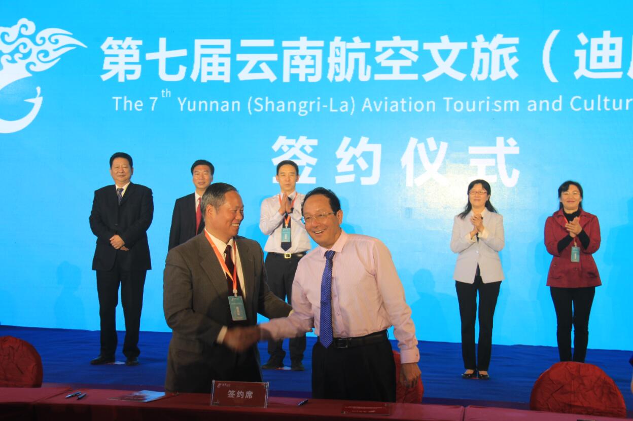 在當天上午舉行的開幕式上,雲南機場集團與雲南省文化和旅遊廳簽訂了「雲南省航空文化旅遊發展戰略合作協議」,迪慶州人民政府與東航雲南有限公司簽訂「東方航空雲南有限公司對口幫扶迪慶藏族自治州航空產業發展暨落實航線扶貧新舉措實施方案」。