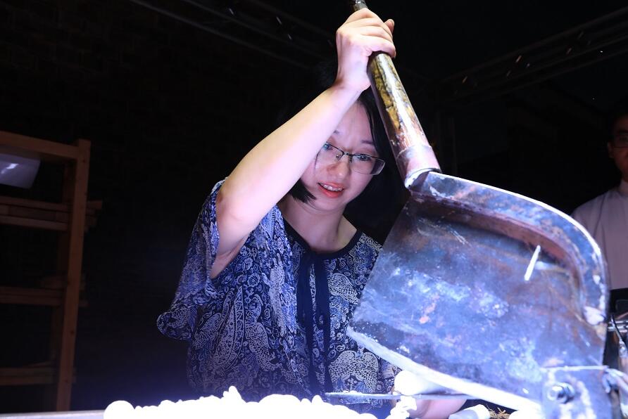 市民在現場體驗切中藥飲片