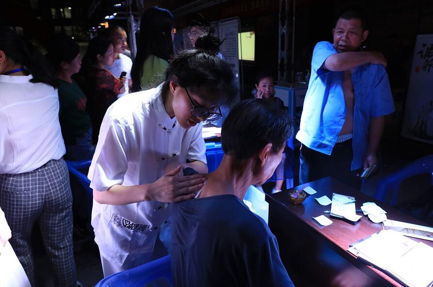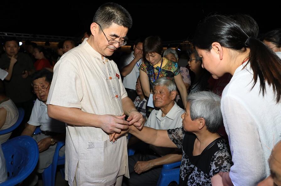 江西中醫藥高等專科學校副校長、針灸專家涂國卿教授在活動現場免費為市民針灸治療