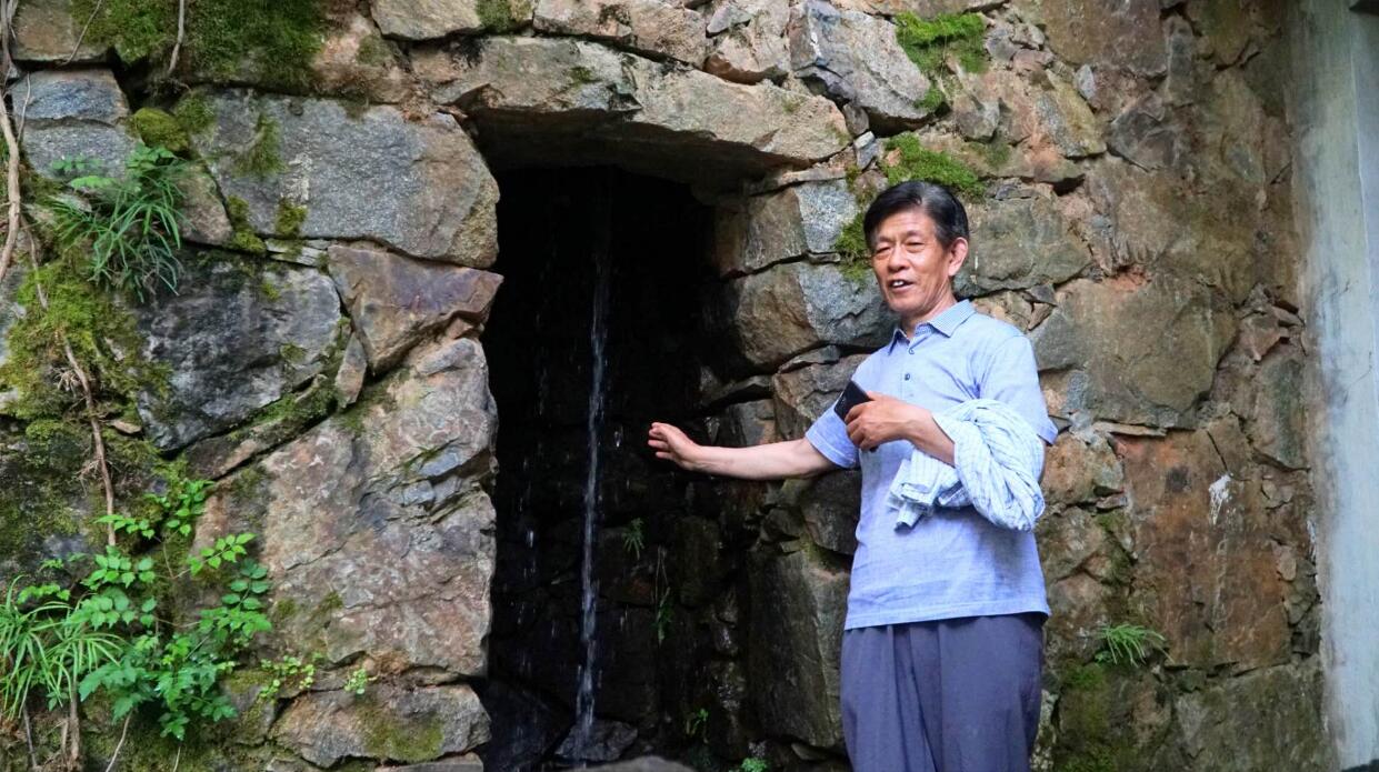 作家劉玉民看着山泉潺潺感歎婺源的奇妙景色
