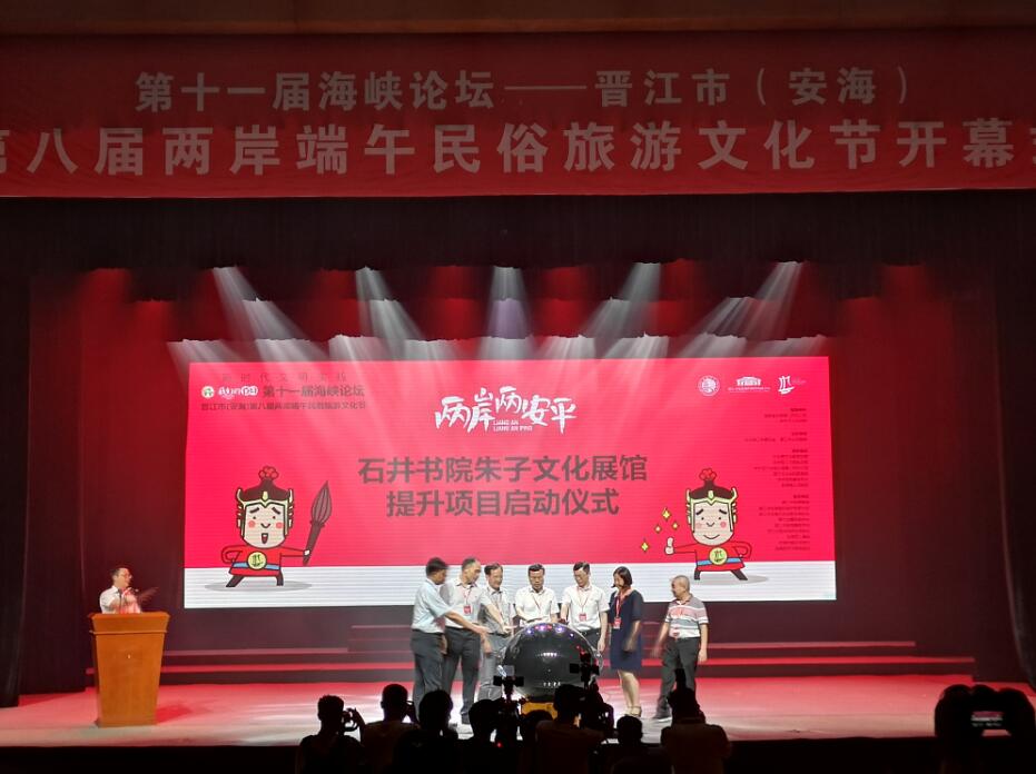【香港商報網訊】6日晚,福建第十一屆海峽論壇·晉江市(安海)第八屆兩岸端午民俗旅遊文化節開幕。開幕式上,石井書院朱子文化展館提升項目正式啟動。同時,舉行了安海「嗦啰嗹」習俗舞台展示和新編高甲歷史劇《浮海孤臣》專場演出。