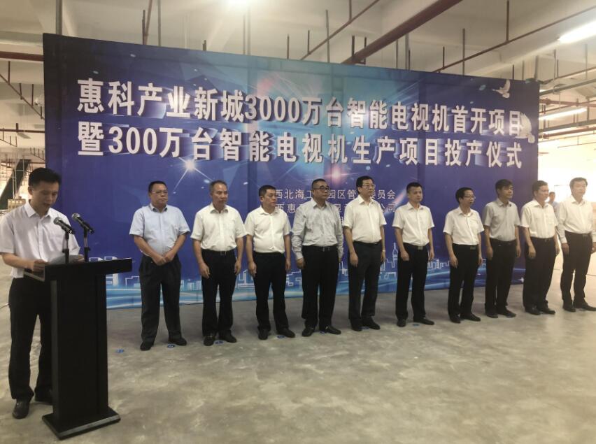 北海市副市長陳勛在致辭中表示,把該項目作為3000萬台智能電視機項目的首開項目並優先啟動,主要目的是要提前將惠科智能電視機產能轉移到北海。300萬台智能電視機項目的建成投產,有利於提前在工業園區培育成熟的供應鏈體系和配套產業集群、整合和優化物流線路和資源,提高工業園區的經濟效益,為後續3000萬台智能電視機項目的順利落地打下良好基礎。
