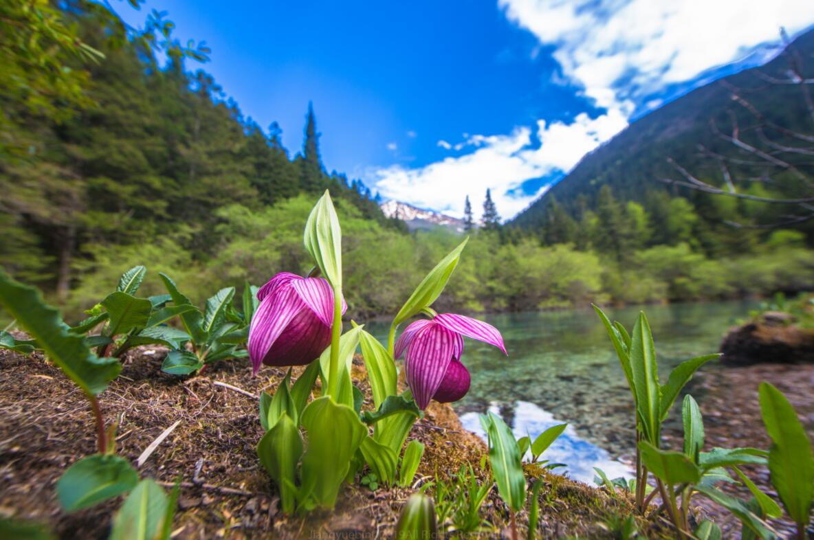 蘭花的花語是美好,喜歡蘭花,感恩生命給與我們的一切美好!黃色、紫紅色、黑色這三種高雅的色調成為黃龍高山蘭花的主色調,間或看見綠的花苞、白的花蕾、粉色的花骨朵兒。目光所及,彷佛在傾斜而下的鈣華堆積妖嬈奪目中呈現出耀眼光芒的翡翠,美的令人屏息。六月的黃龍池水豐滿、氣候溫潤,嬌艷的花朵在肆意開放,陽光也變得溫柔了,一切美好都開始自信登場。蘭花不僅幽香清新、風姿素顏,花容端莊,沁人心脾的香味更是讓人難忘,而且她深厚的文化底蘊,獨特的風格品質更是讓人傾慕。和她一起走在瑤池仙境、耳邊水流叮咚,腳下蘭草相迎,再把「氣若蘭兮終不改,心若蘭兮終不移」的愛的真摯帶給她,這份濃濃的蘭花之緣,在彩池旁、在森林間、在樹蔭下,輕輕搖蕩,點亮彼此心弦的眺望,送給情侶蘭花的馨香。