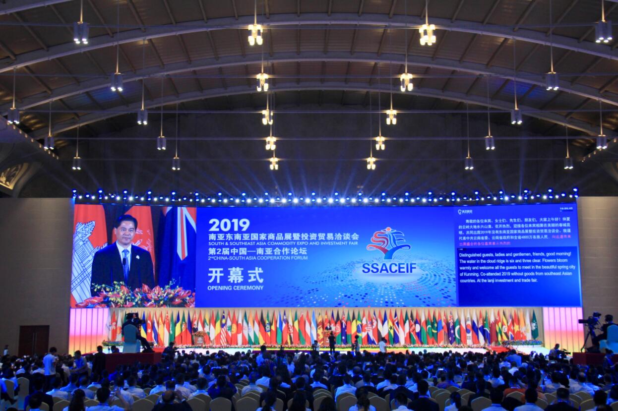 南盟工商會主席盧旺·艾德瑞辛格、斯里蘭卡發展與國際貿易部副部長納林·班達拉·賈亞馬哈、柬埔寨商務部國務秘書春達拉、緬甸商務部部長吳丹敏、孟加拉國商務部部長提普·孟希、香港中華總商會會長蔡冠深先後致辭。他們表示,南亞和東南亞各國是中國的近鄰,是共建人類命運共同體的重要夥伴,長期以來積極支持和參與「一帶一路」建設。在雲南舉辦商洽會和中國—南亞合作論壇,將搭建起優質平台、創造更多合作機遇,對推進中國與「一帶一路」沿線國家和地區的交流合作,深化各國政策溝通、道路聯通、貿易暢通、貨幣流通、民心相通,具有重要意義。