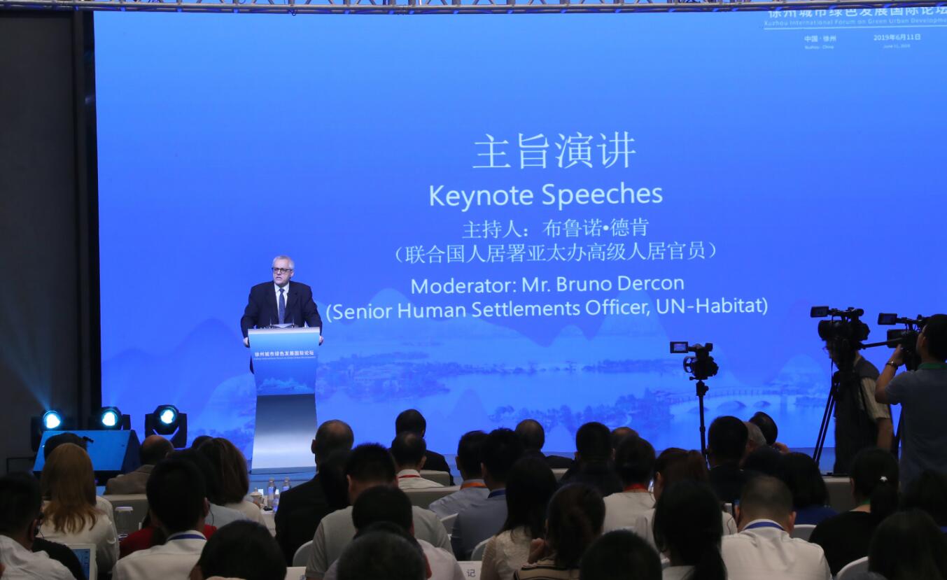 【香港商報網訊】6月11日,由江蘇省徐州市人民政府與聯合國人居署共同舉辦的2019徐州城市綠色發展國際論壇,在江蘇省徐州市雲龍湖畔萬豪酒店召開。近20個國家地區、國際組織機構代表和相關專家學者、中國相關領域的院士、教授專家200餘人蔘會,共同探討、分享交流城市轉型創新發展、資源循環利用和環境改善的可持續性發展等問題,推動全球城市走綠色發展、可持續發展之路。