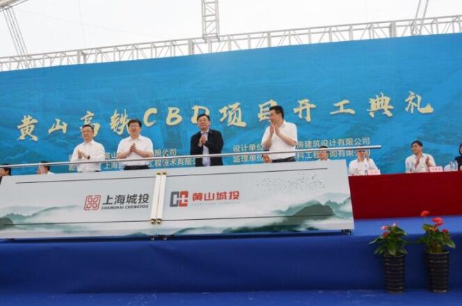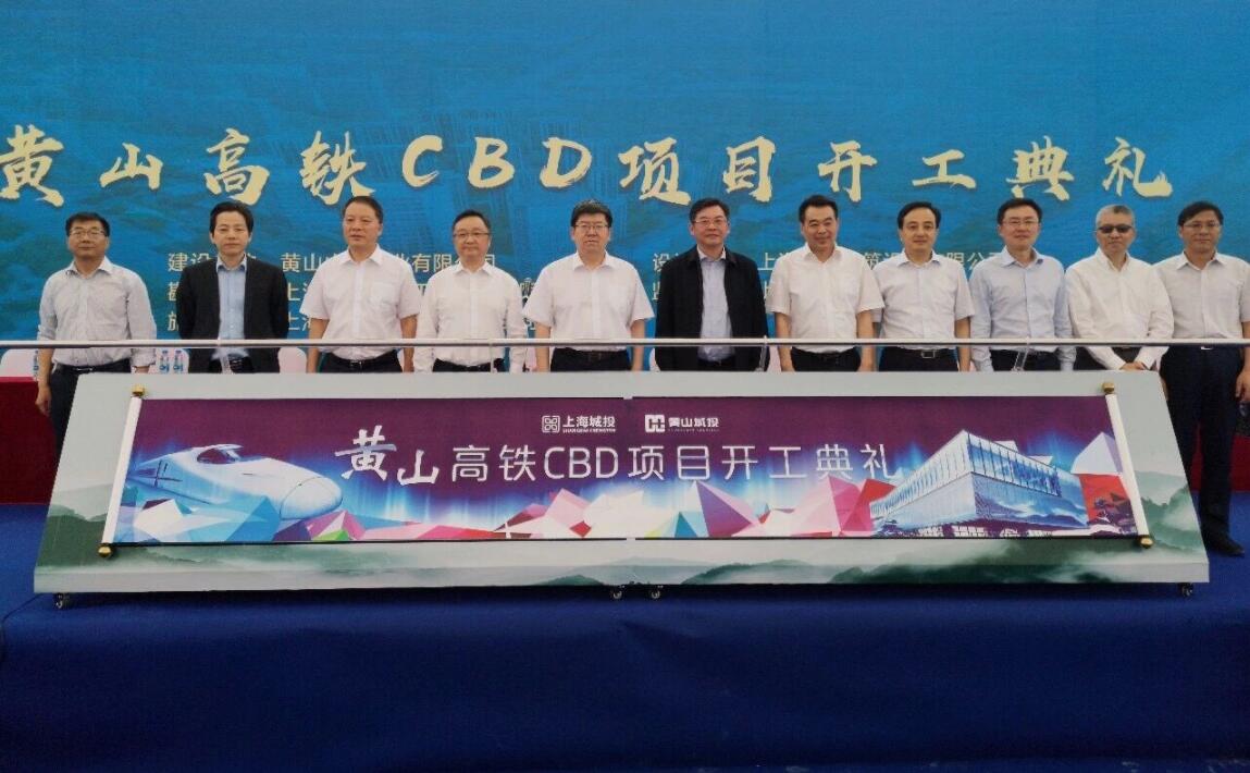 6月12日,黃山高鐵CBD項目正式開工。黃山市委書記任澤鋒宣佈開工,並與市委副書記、市長孔曉宏,上海城投集團黨委書記、董事長蔣曙傑,上海建工集團總裁卞家駿一同推杆,正式啟動項目建設。