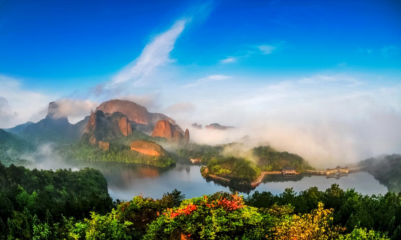 地處江西省上饒市弋陽縣境內的龜峰,因“無山不龜、無石不龜”而得名。這裏的山氣勢恢宏,這裏的丘峰精巧玲瓏,這裏的奇石千姿百態。1.5億年的風雨雕琢,繪就了一幅渾然天成的山水畫卷,素有“江上龜峰天下稀”和“天然盆景”的美譽,被聯合國教科文組織盛讚為“丹霞地貌獨一無二的精品,人與自然和諧相處的經典範例”,是世界自然遺產地、世界地質公園,她見證了地球的生生不息和大自然的鬼斧神工。