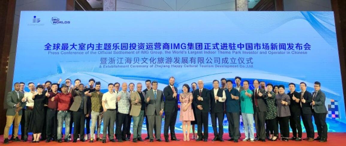 6月15日下午,全球最大室內主題樂園投資運營商IMG集團正式進駐中國市場新聞發佈會暨浙江海北文化旅遊發展有限公司成立儀式在杭州舉行。