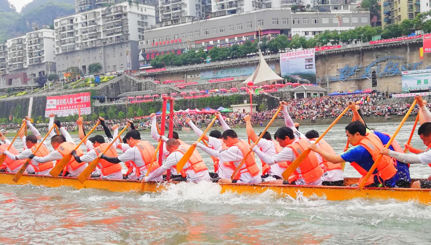活動現場,綵球吐紅壯山色,百舸爭流繪將魂,隨着發令槍一響,58支龍舟分為A組(河東組)和B組(河西組)比賽,各支參賽龍舟在江面上相互角逐,一排排整齊的龍舟猶如利箭脫弦在逆流中奮勇爭先。烏江兩岸人山人海,鑼鼓喧天,近萬名觀眾的加油聲、吶喊聲交相呼應,形成生氣勃勃、扣人心弦的場面,讓所有觀眾朋友們目睹了一場水上「力量的較量」現場版。