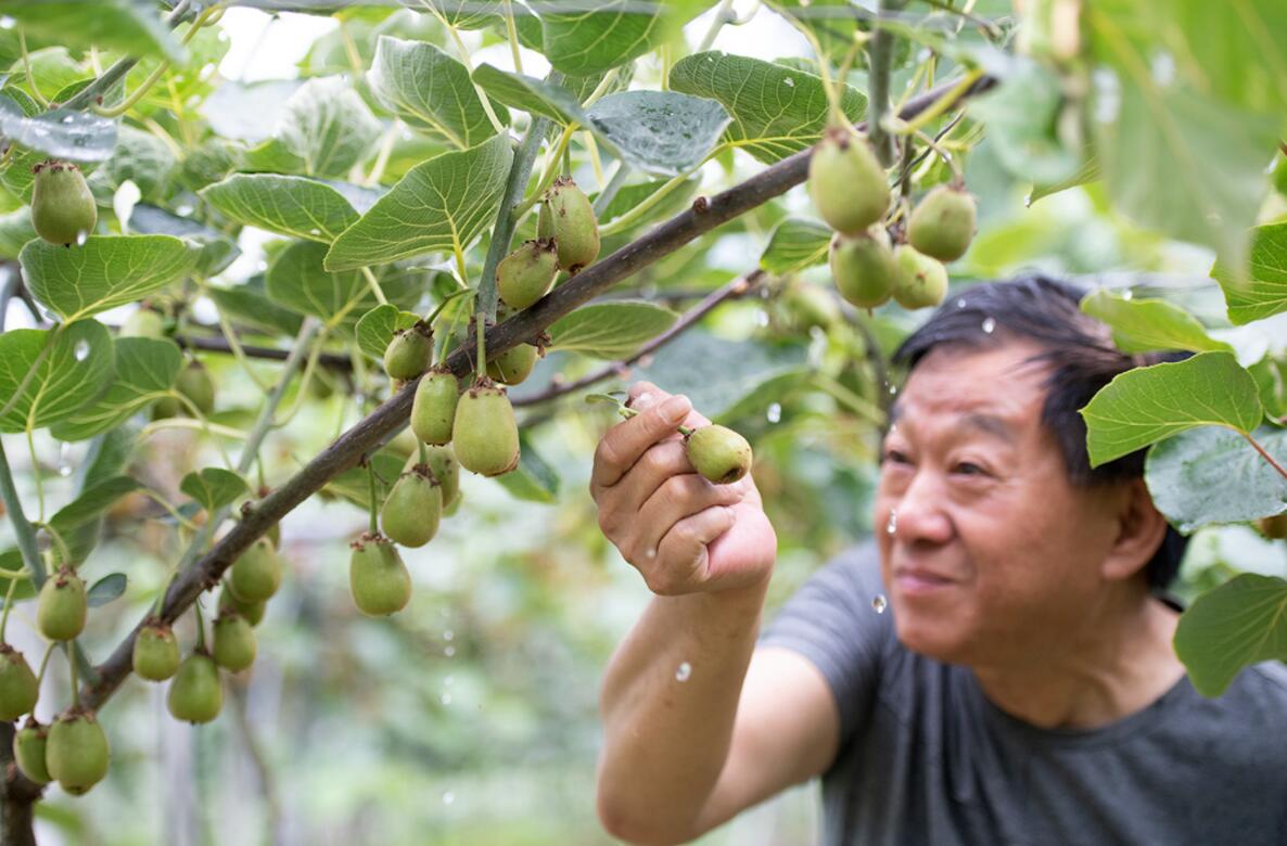 姚剛在查看獼猴桃長勢 攝影作者:秦慈坤 周政