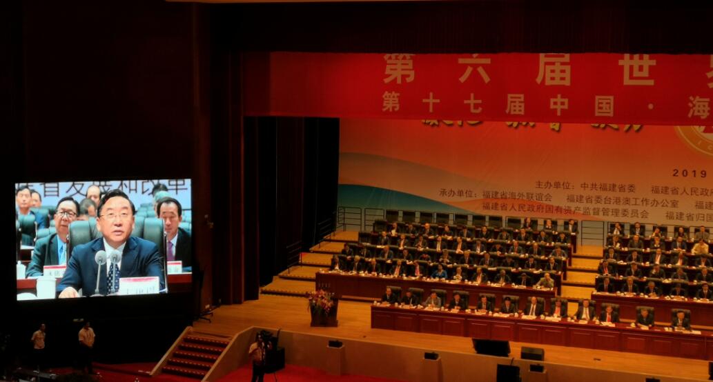 6月18日上午,第六屆世界閩商大會在福州海峽國際會展中心隆重舉行