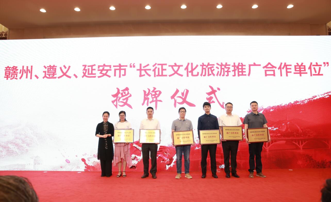 三地文化和旅遊部門還共同簽訂了《文化旅遊合作框架協議》,就加強長征文化研究、旅遊精品線路打造、紅色文化載體交流、市場開發合作、旅遊人才交流培訓等方面達成共識,對有關旅行社、教育研學機構等授予「贛州、遵義、延安長征文化旅遊推廣合作單位」。