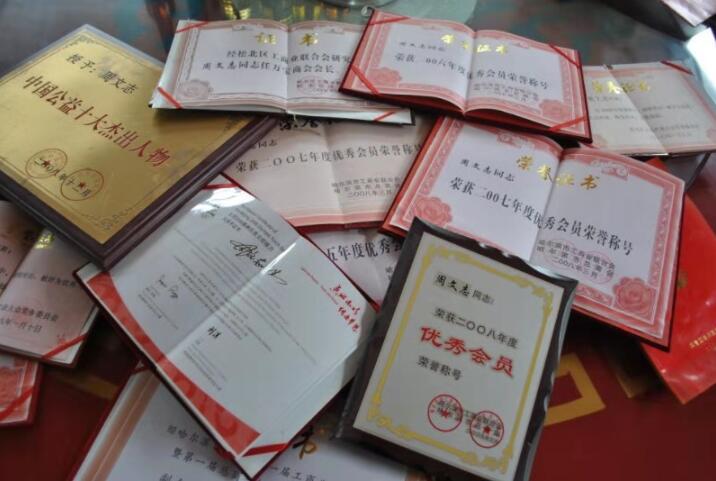 只要周文志想到、看到的地方,讓他感到必須要伸出援手,他常常是身上有多少拿多少。汶川地震,他捐款捐物合計47萬元;當地一個離不開電腦的部門,電腦老化、環境陳舊,他捐款捐物25萬元,提升了當地的辦事效率,老百姓都拍手叫好,村裡因白內障失明的老李家的孩子上學費用也是他給提供的。那些年,他開始資助大學生,哈爾濱商業大學、師範大學…離他家近的就多資助幾個,外省市的距離遠就少資助幾個。他說:「人窮不能志短,災難來臨時大家伸把手讓人渡過難關是應該的,要幫助那些該幫助的人。」