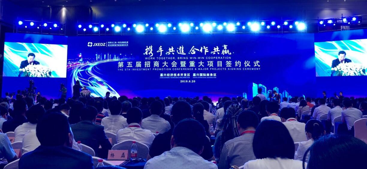 據悉,「攜手共進、合作共贏」招商大會暨重大專案簽約儀式是嘉興經開區一年一度的重大經貿活動。本次大會簽約項目37個,總投資293億元,涉及智慧製造、汽車研發、新能源、健康食品、醫療應用、科創平臺、金融投資和高端城建等多個不同領域。