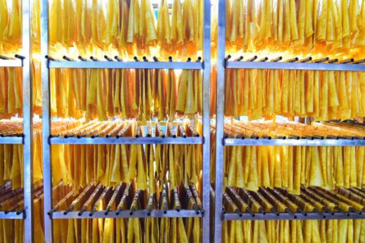 走進隆達豆製品有限公司,濃郁的豆製品香味撲鼻而來,展台內擺放着包裝精良的豆皮,豆絲等精深加工產品,車間內晾制的豆乾色澤誘人。據負責人70後大姐陳淑芬介紹,企業產品精選地產非轉基因大豆和被譽為「世界三大冷礦泉」之一的五大連池礦泉水,採用獨特的豆製品加工技術及配方,手工製作。食物保證了蛋白質含量,同時提高了消化吸收率,具有鮮明的地域特色。當地政府免費提供廠房使用,節約成本,自2016年產品遠銷北京、上海、浙江等地,得到了南方市場和消費者的廣泛認可。