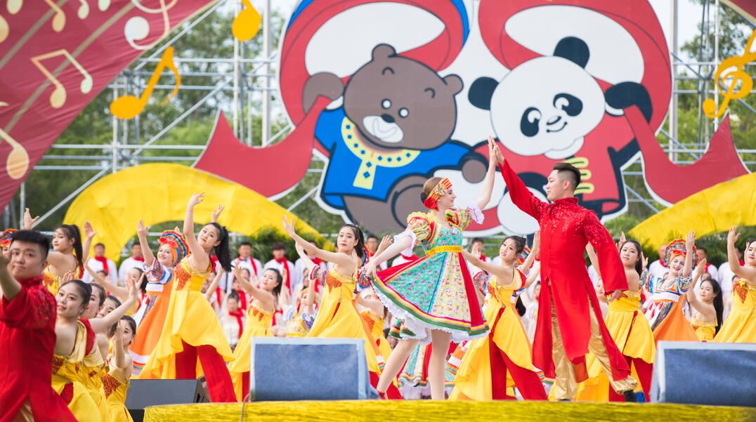 16時35分,王曉峰宣布第十屆中俄文化大集開幕。與會中俄嘉賓和觀眾共同觀看了中俄兩國藝術家聯袂奉獻的大型文藝演出—《友誼頌》。(金麗 張曉磊)