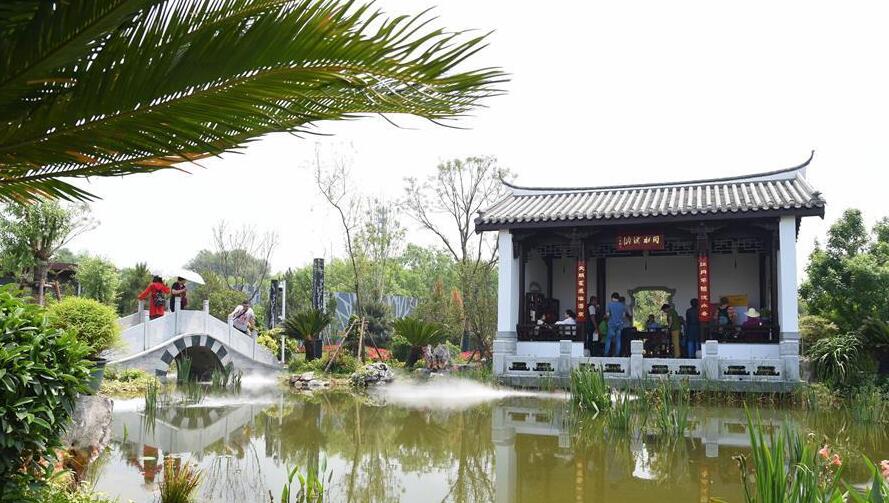 在中華園藝展示區中的福建園裡,一組具有福州地區特色的建築,以及具有鮮明福建特色的大量園藝植物,給遊客帶來了身臨其境的體驗感。在木牌坊、馬鞍牆等濃縮福州地區風貌的建築之間,組織者還專門設置了品茶涼亭,供遊客駐足品茶,體驗福建茶文化。