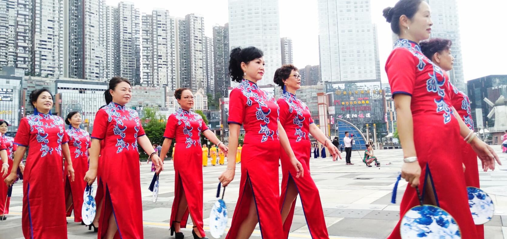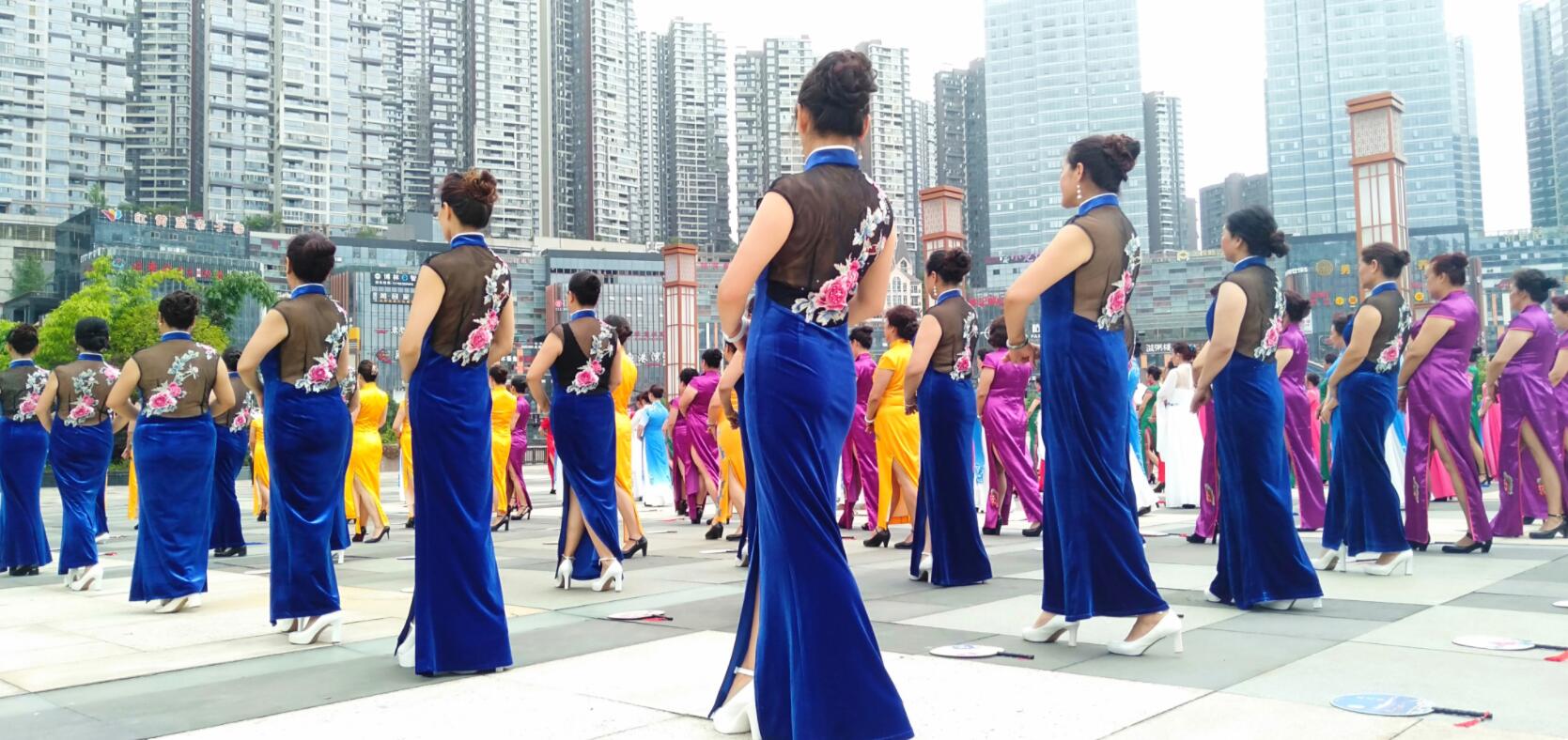 當日下午,隨着中天未來方舟半島廣場上響起《水韻江南》和《江南情》的音樂聲,來自各個旗袍方隊的芊芊淑女,婀娜旗袍着身,曼妙多姿,笑顏如花綻翩翩起舞……