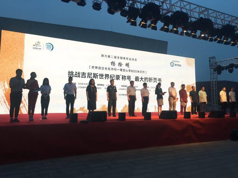 本次挑戰活動由吉尼斯世界紀錄認證,山西省體育局指導、太原市體育局支持、山西日報報業集團主辦,山西省體育局局長趙曉春,山西日報報業集團黨委委員、副總編輯任靈傑,太原市體育局局長高波,著名書法家龍得勝,著名書法家石躍峰,著名音樂書法家李斌權等參加了吉尼斯世界紀錄頒發認證書儀式。
