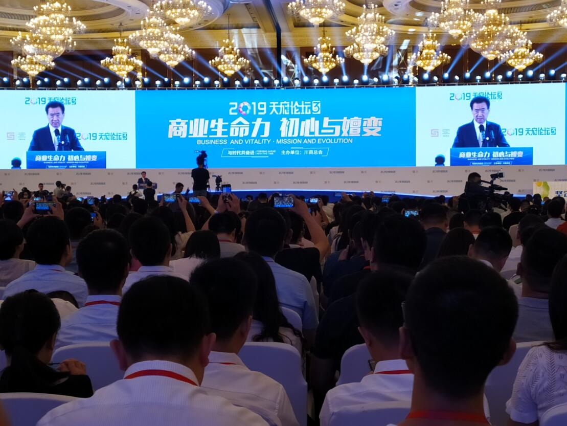 在當天下午舉行的2019天府論壇上,王健林作「新時代新川商」主題致辭,對川商發展提出期望和建議。