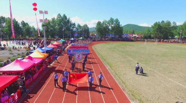 當日清晨,前來參加呼中區第五屆全運會開幕式的檢閱方隊和觀禮群眾,從四面八方聚集到呼中鎮體育場,場內綵球高飄、彩旗招展,人如山海,熱鬧非凡。