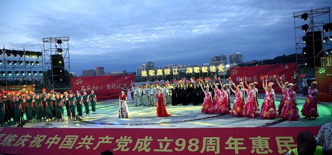 【香港商報網訊】為隆重慶祝中國共產黨成立98周年,謳歌黨的光輝歷程,6月28日至30日,由四川省南充市文化廣播電視和旅遊局主辦,南充市文化館、順慶區文廣旅局、順慶區中城街道辦事處承辦的「放歌嘉陵江·頌歌獻給黨」——南充市慶祝中國共產黨成立98周年惠民系列演出在順慶區濱江大道的濱江陽光廣場舉行。
