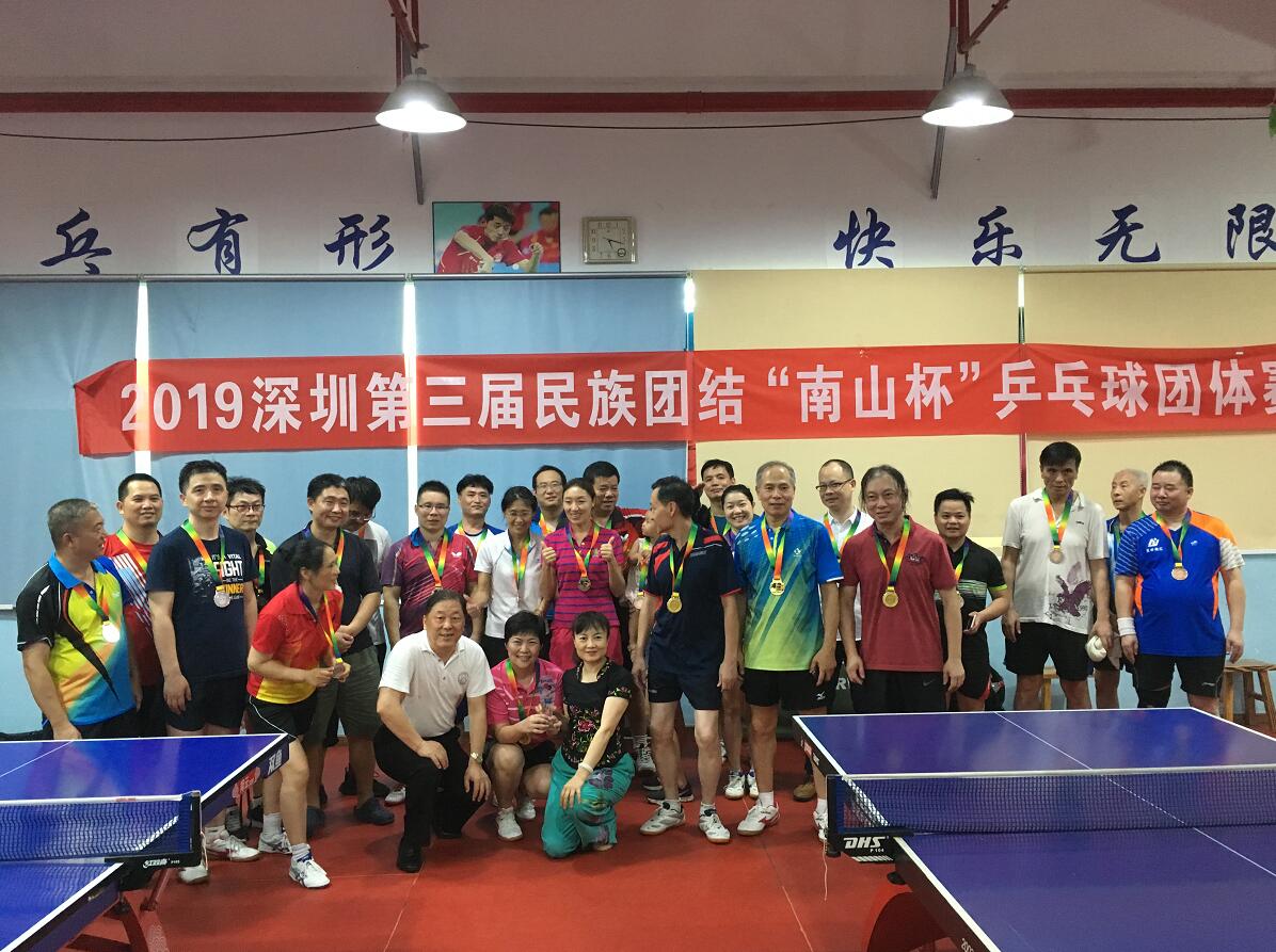 【香港商報網訊】為增進深圳市各民族同胞交流交融,在中國共產黨建黨九十八周年即將來臨之際,深圳市民族團結髮展促進會和南山區民族團結髮展促進會共同在南山O2時尚健身會所乒乓球館舉辦了深圳第三屆民族團結「南山杯」乒乓球團體賽活動。