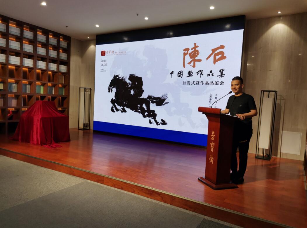 陳石:「浸心於筆墨,大幅小幀皆有氣象」。首發的作品集主要以馬為主,輔以山水和人物,這是因馬在中國文化里是一個能很好地反映時代精神面貌的題材。一個畫家、一個藝術家,其作品一定要和時代精神結合起來,這樣的作品才有生命力。同時,新時代也需要這種克服困難,百折不撓,勇往直前的精神。