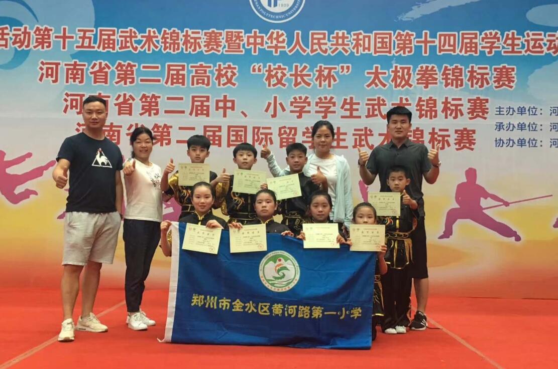據了解,河南省中小學生武術錦標賽是目前河南省中小學武術比賽含金量較高級別的比賽。鄭州市金水區黃河路第一小學「武之炫」社團首次組隊參加此類比賽,最終以雄厚的實力,在河南省中小學男子組少林拳和女子組少林拳比賽中分別包攬第一、第二名,在武術器械項目中獲得兩個第二名、一個第三名、兩個第五和一個第六的好成績。