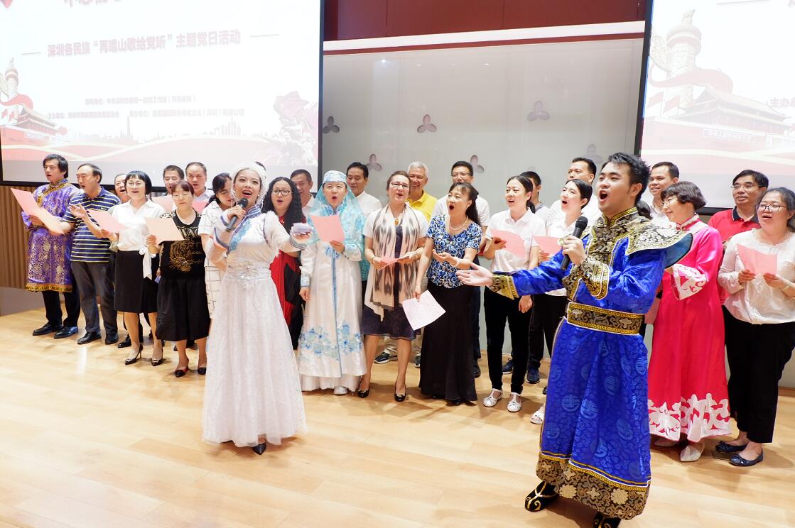 【香港商報網訊】記者 蘇偉 報導:6月28日,一首婉轉動聽的《再唱山歌給黨聽》在深圳市黨群服務中心響起,由深圳市委統戰部(市民宗局)指導,深圳市民族團結發展促進會(簡稱「市民促會」)主辦的「不忘初心、牢記使命」——深圳各民族「再唱山歌給黨聽」主題黨日活動正在這裏舉行。活動通過民族特色文藝表演、有獎問答等多種形重溫革命歷史,緬懷革命先烈,引導各民族同胞堅定理想信念、勇於擔當作為,深圳市民促會會長楊永群等領導出席活動。