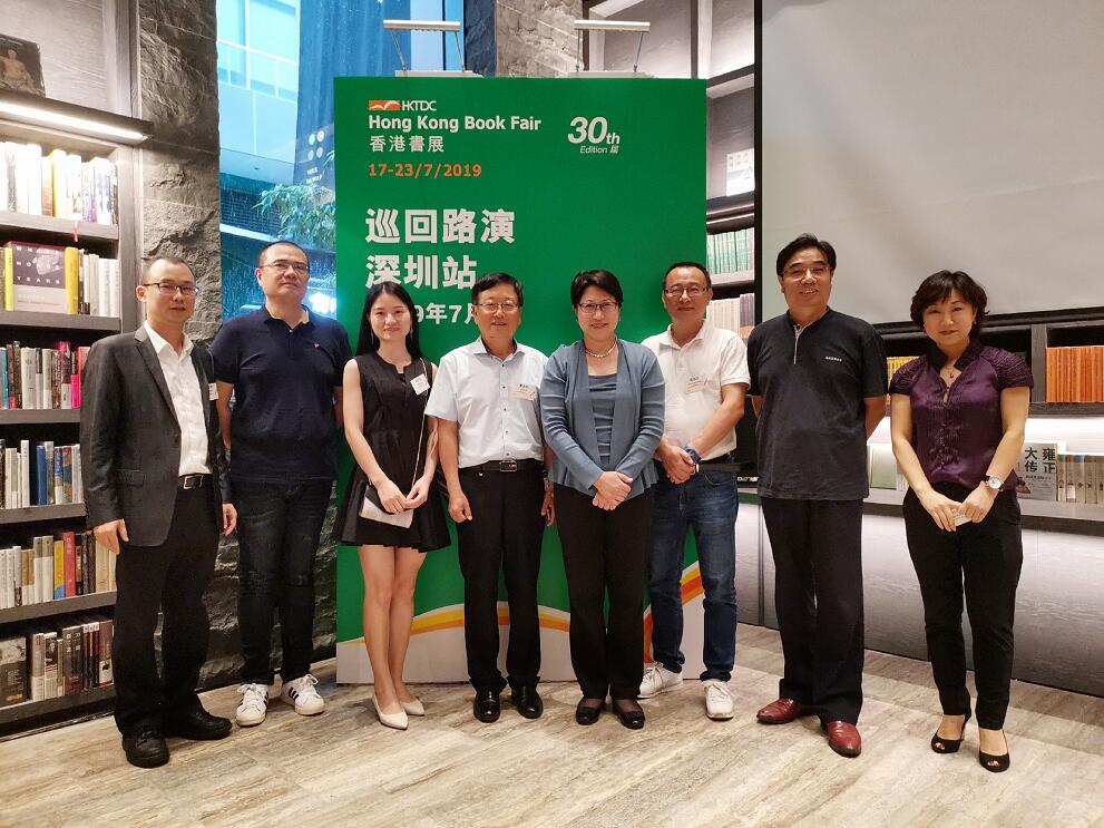 香港貿發局助理總裁張淑芬(右四)與一眾深圳出版業界及媒體出席於深圳舉行的香港書展路演
