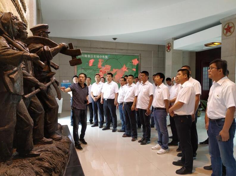 【香港商報網訊】為紀念中國共產黨成立98周年,豐富「不忘初心 牢記使命」主題教育,努力營造「紅色文化」育人的良好氛圍,7月3日上午,二九一農場有限公司組織30餘名黨員開展「黨旗照初心 誓言喚使命」為主題的「紅色之旅」活動,先後來到紅興隆博物館和北大荒農機博覽園參觀學習。