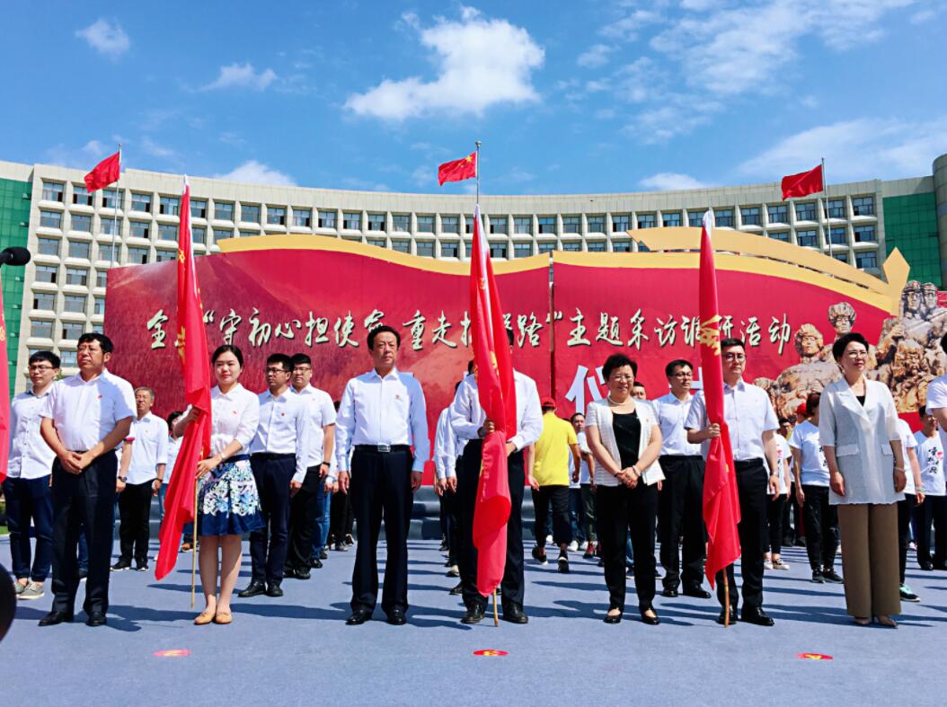 儀式上,媒體記者代表集體宣誓,出席領導及抗聯英雄後代代表張卓亞,為「重走抗聯路」小分隊代表授旗。