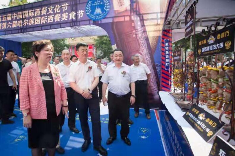 中國飯店協會會長韓明、哈爾濱市副市長張萬平參觀西餐企業食品展位