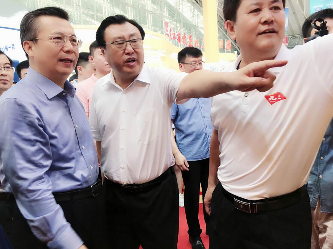 北大荒大米、九三豆製品、完達山乳製品、豐緣麵粉……一走進展會場館內,農產品琳琅滿目,米香肉嫩,清酒淡茶,果香穗滿。王永康在黑龍江省農墾總局黨委書記、局長,北大荒農墾集團總公司董事長王守聰;北大荒農墾集團總公司黨委副書記、副董事長、總經理徐學陽等領導的陪同下,興緻勃勃地觀看了中國農墾各個特色展區,與參展人員進行親切交流。在寶泉嶺農墾龍門福地酒業有限責任公司展位前,王永康饒有興趣地接過公司總經理陸書芬女士熱情遞過來的一小杯白灑,細細地聞了聞,說道「龍香型」,味道不錯。
