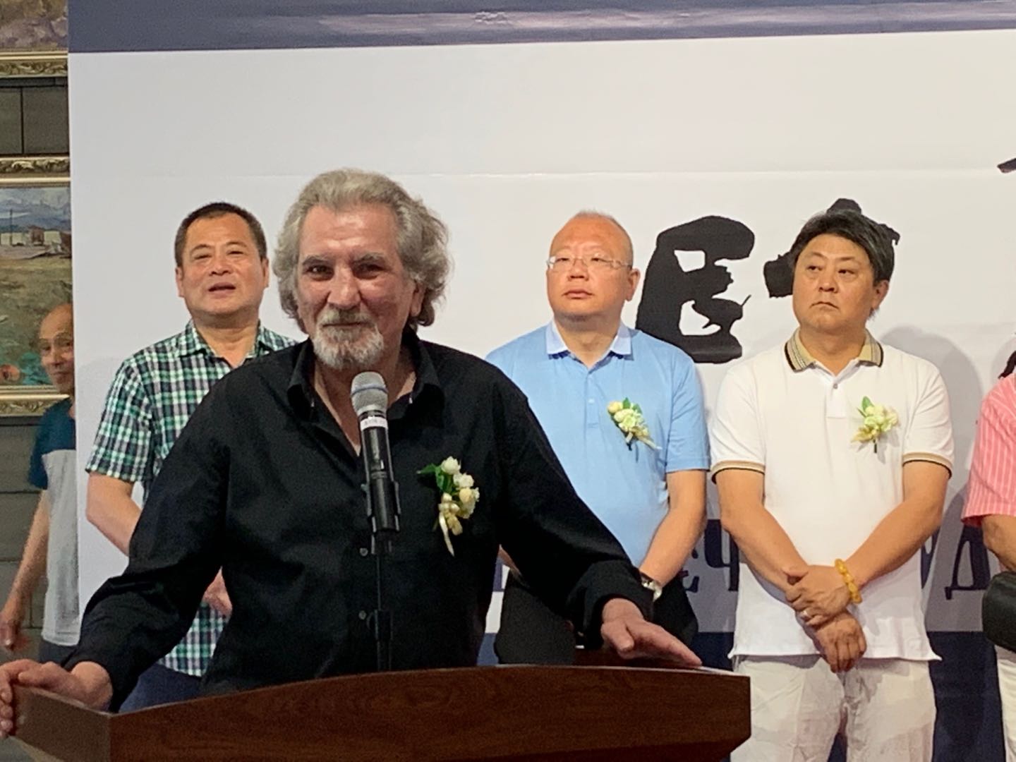 為了此次展覽,伊萬先生曾先後到北京、南京、大連、深圳等地創作採風,他對潑墨寫意的中國傳統人文繪畫產生興趣,其作品鐫刻了中國傳統人文畫的印記。在開幕式上,伊萬稱,感謝所有的記者,特別感謝我的好兄弟劉明秀,也非常感謝在百忙之中抽出時間來參加這次活動的各位領導及嘉賓,還有從俄羅斯趕來的好朋友。