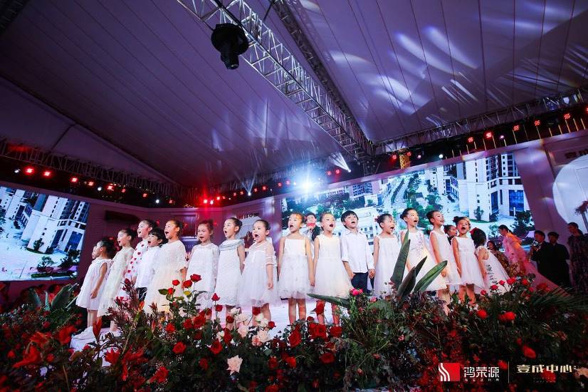 主持人請出了壹成二代小主持人上場,與來賓們共同見證四十年來深圳特區的更新蛻變。在一段回首崢嶸的短片後,鴻榮源集團員工們登場獻上精心準備已久的《春天裏的讚歌》。鏗鏘有力的朗讀和扣人心弦的讚歌,一場視聽盛宴恢弘上演,光影之間,彷彿所有人都被帶回了夢開始的那個春天。