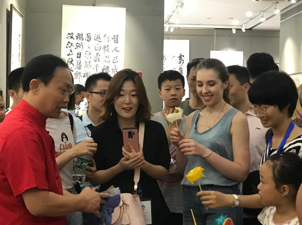 當天下午,媒體一行人從鵝池進入,途徑毛澤東詞亭、擱筆亭,來到黃鶴樓正樓,登樓觀賞四面風光,感受其曆史人文古韻。隨後,境外媒體一行人在白雲閣內,還參與了非遺泥人的製作互動,感受漢繡所承載的文化內涵。其中民間手藝吹糖人的項目,引得遊客們陣陣驚呼,紛紛參與製作屬於自己的糖人,由吹糖人師傅吹的軍運會吉祥物兵兵的糖人栩栩如生地屹立在展示臺上。最後大家往東南方前行,來到了岳飛廣場,在岳飛雕像前合影留念,追憶岳飛戎馬倥傯的一生,為此次「精彩軍運、美麗武漢」之行做畫龍點睛之筆。